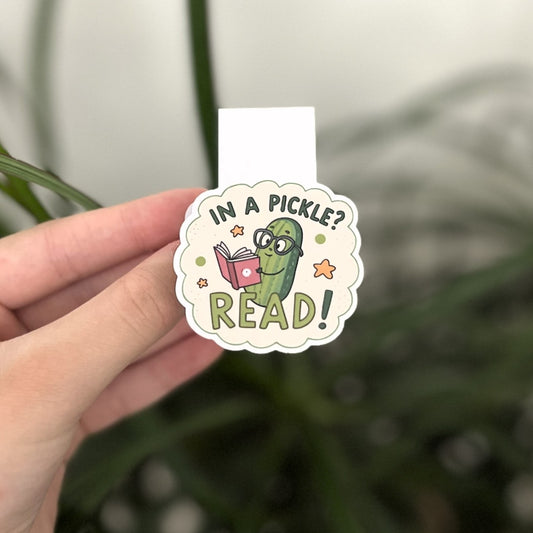 In a Pickle? Read! | Magnetic Bookmark | Cute pickle illustration